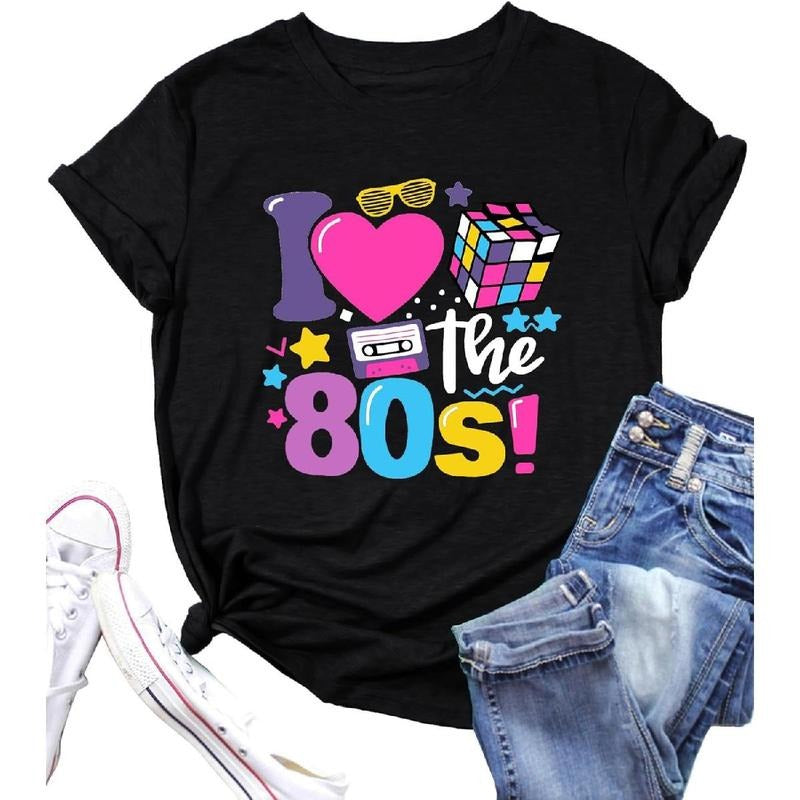 [100% Cotton] I Love The 80's Shirt for Women Vintage 80s Music Graphic Tshirt 80's Party Short Sleeve Blouse Tops
