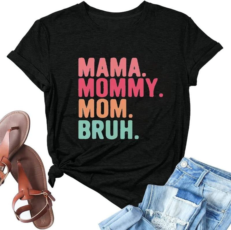 [100% Cotton] Mama Mommy Mom Bruh Shirt Mama Graphic Shirts Funny Mom Gift Tshirt Casual Mother Letter Print Short Sleeve Tee Top