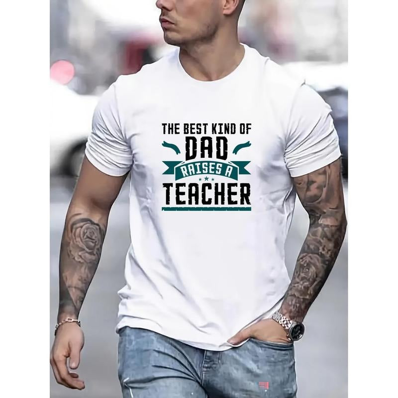 100% cotton T-shirt, the best dad teacher letter print men's casual round neck short T-shirt, quick drying comfortable casual summer T-shirt, suitable for daily wear exercise and vacation resorts Made in USA