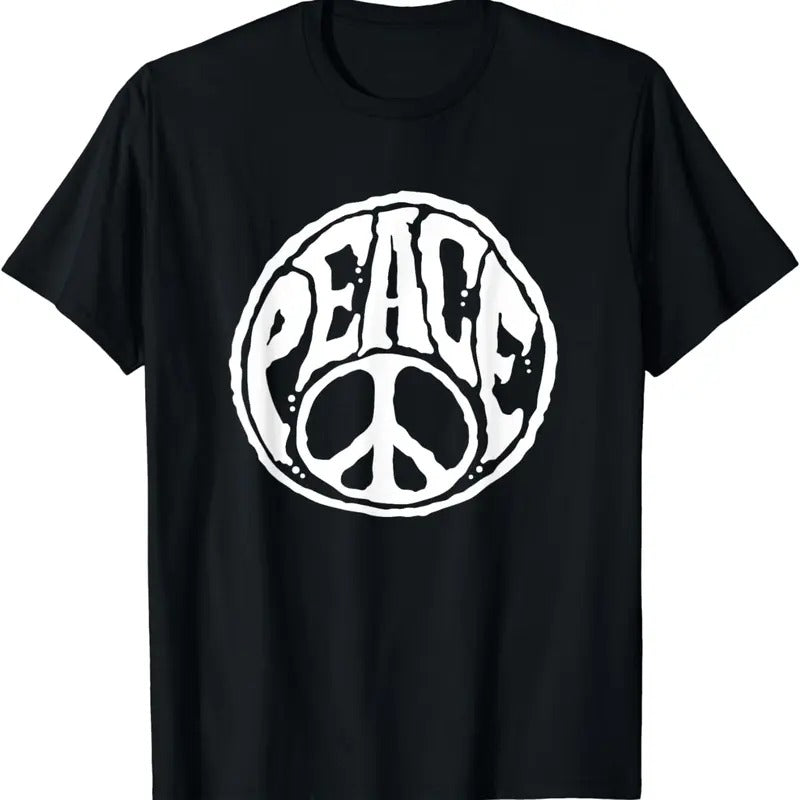 [100% Cotton]World Peace Sign Hippie Kindness White Retro 60s 70s T-Shirt