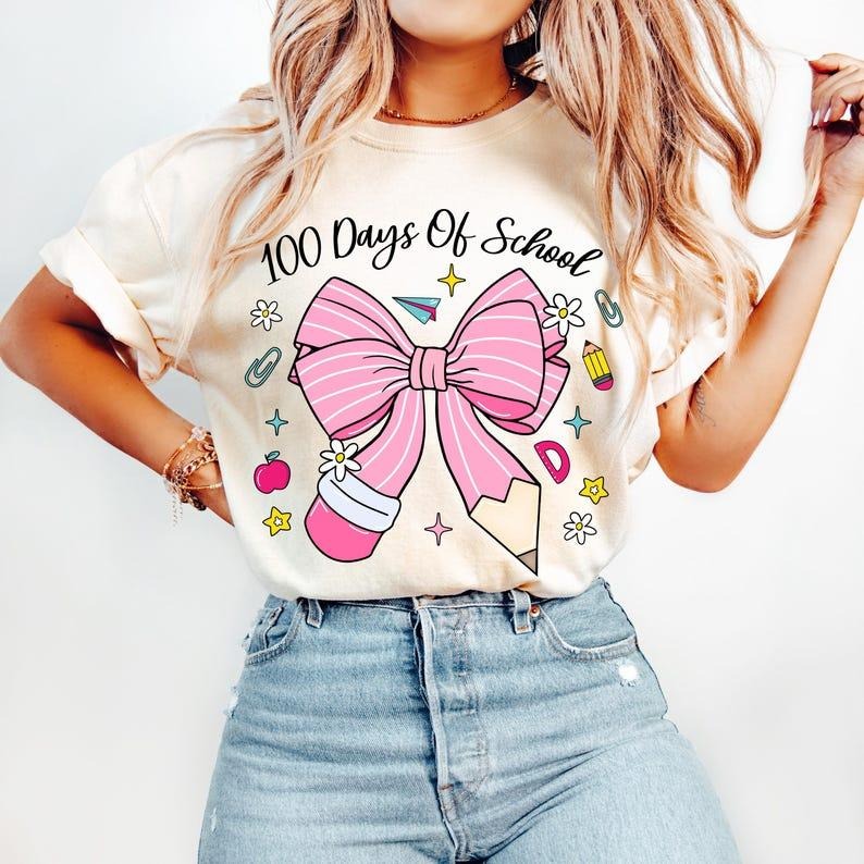 100 Days of School Coquette, Teacher 100 Days, Coquette Teacher, Teacher Stuff T-shirt