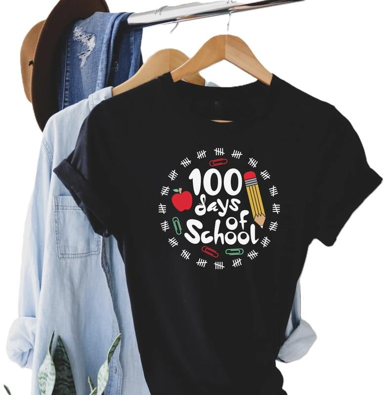100 Days of School Shirt, 100 Day of Sweatshirt, 100th Day Of School Celebration, Back to School Sweater, Teacher Gifts, Kids School Tshirt Menswear Top Underwear Streetwear Man Shortsleeve Round Neck Tropical Casual Crewneck