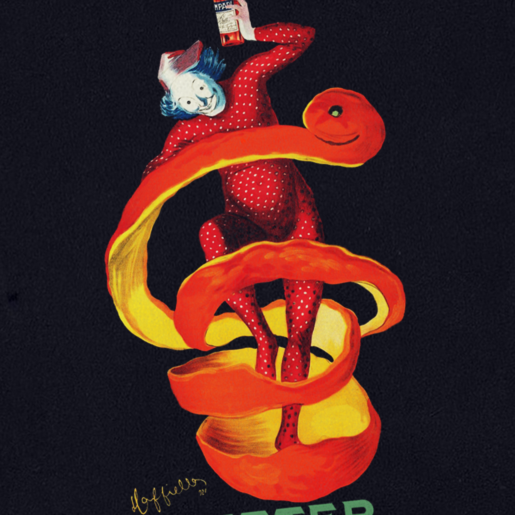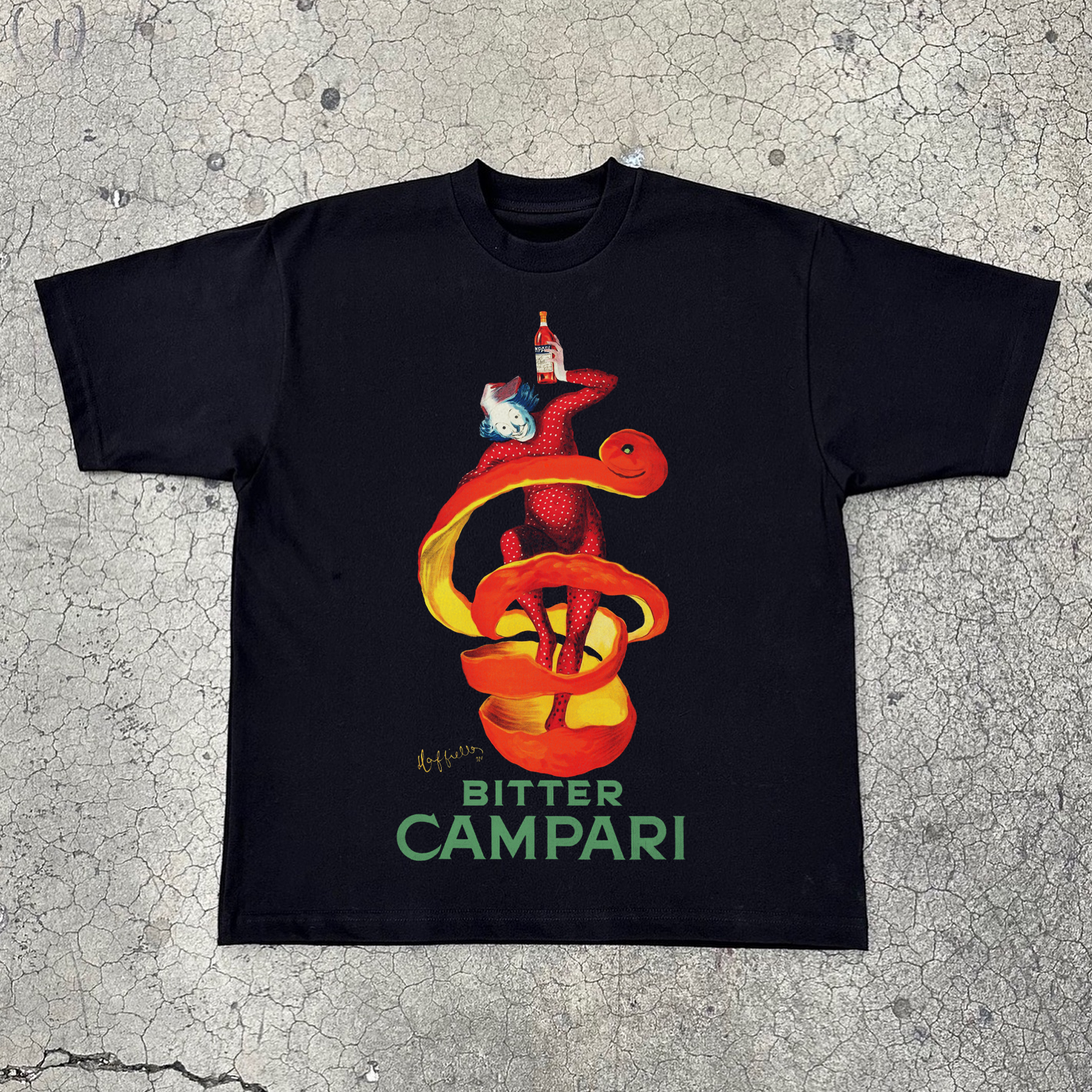 1920s 'ORANGE' CAMPARI POSTER HEAVYWEIGHT BLACK T-SHIRT