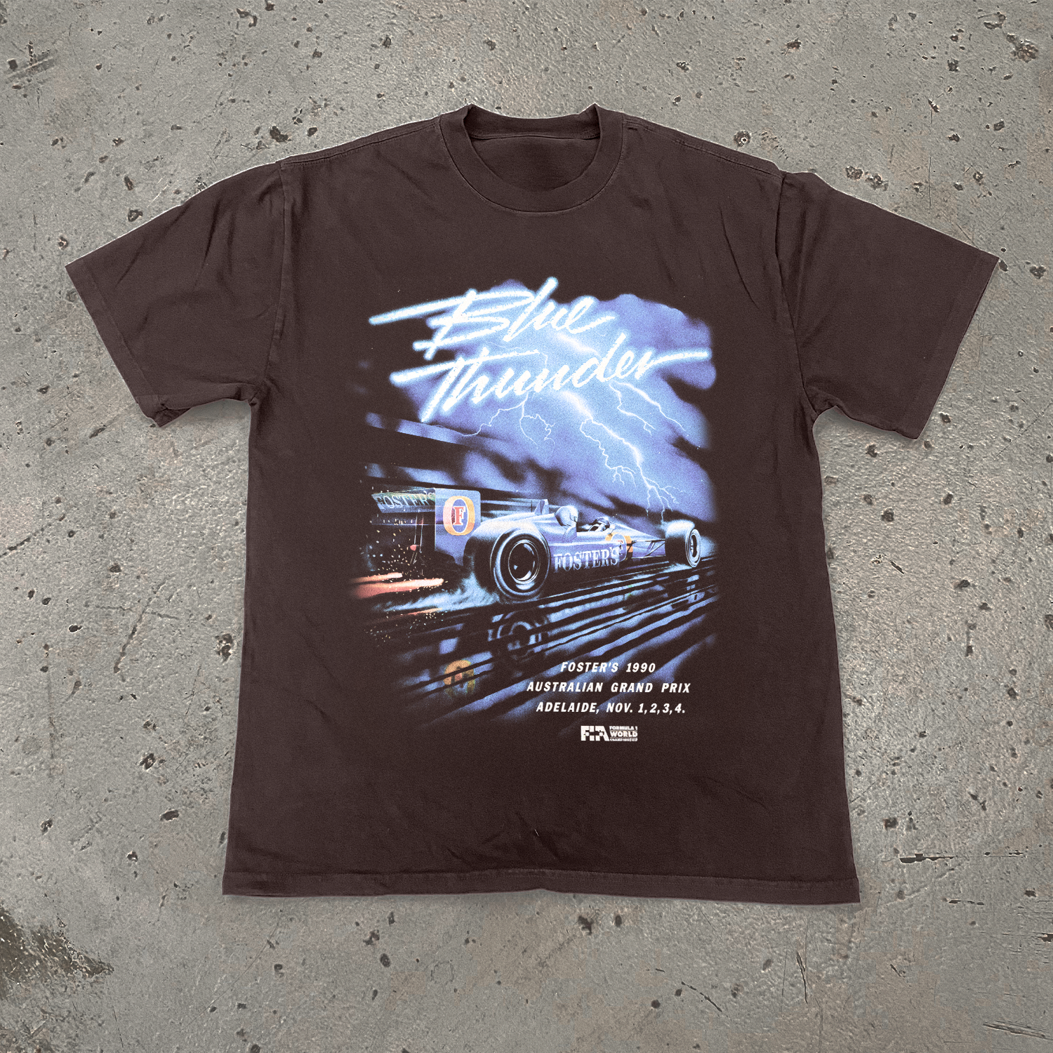 1990 AUSSIE GRAND PRIX 'BLUE LIGHTNING' FOSTERS CHOC HEAVY WEIGHT T-SHIRT