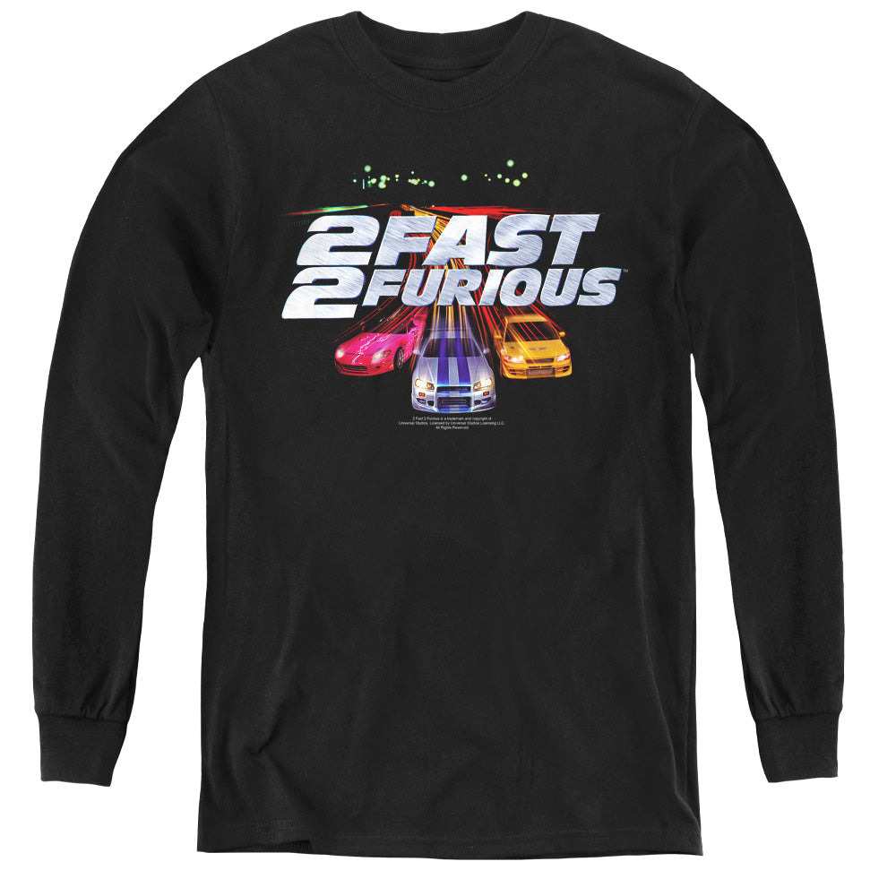 2 Fast 2 Furious Logo Long Sleeve Kids Youth T Shirt Black