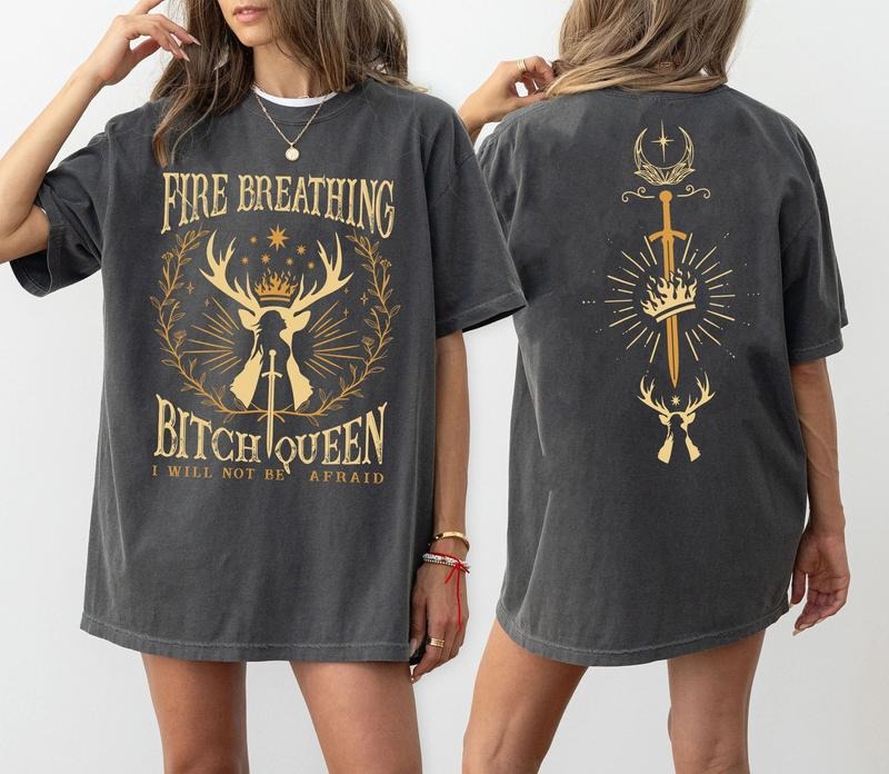 2 Slide Design, Two Sided Fireheart Queen Aelin Comfort Colors Shirt, Throne Of Glass Washed T-shirt, She Will Not Be Afraid, Bookish Shirt, Book Lover Gift