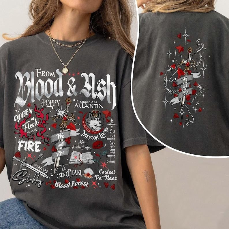 2 Slides, From Blood and Ash T-Shirt, Poppy Queen of Atlantia Shirts, We Will Rise Shirt, Jla Inspired Merch, Gift for Book Lover Tee Womenswear