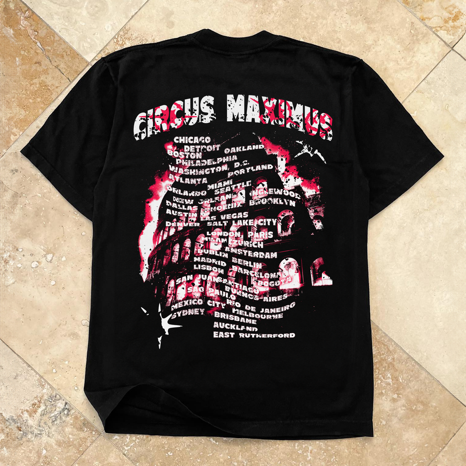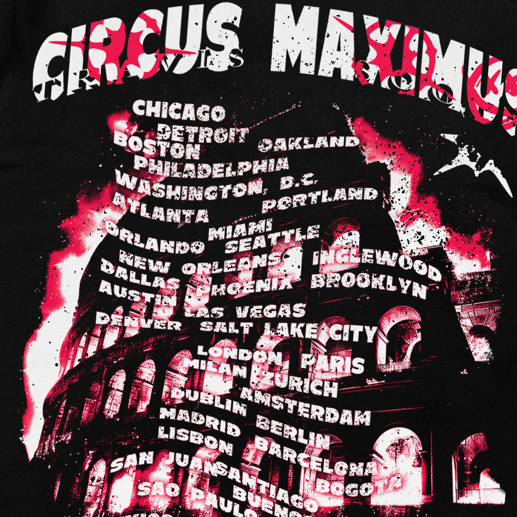 2024 TRAVIS SCOTT 'CIRCUS MAXIMUS TOUR' MERCH W / DATES HEAVYWEIGHT BLACK T-SHIRT