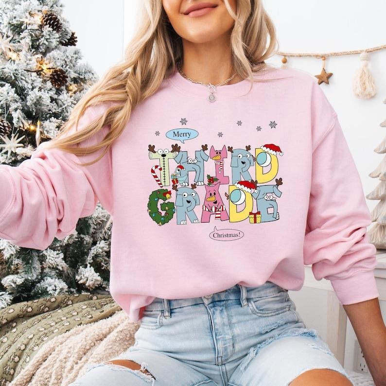 2rd Grade Teacher Christmas Sweatshirt, Third Grade Squad Xmas Tee, Elephant And Piggie Christmas T-shirt, Santa's Favorite Teacher Hoodie
