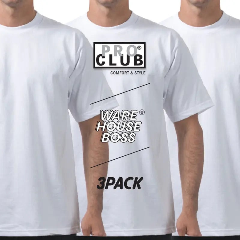 3 Pack PROCLUB Men's Heavyweight Short Sleeve Shirts PRO CLUB Plain Crew neck T Shirt Casual Basic Cotton Tee Basic Shirts Hip Hop Harem Big and Tall