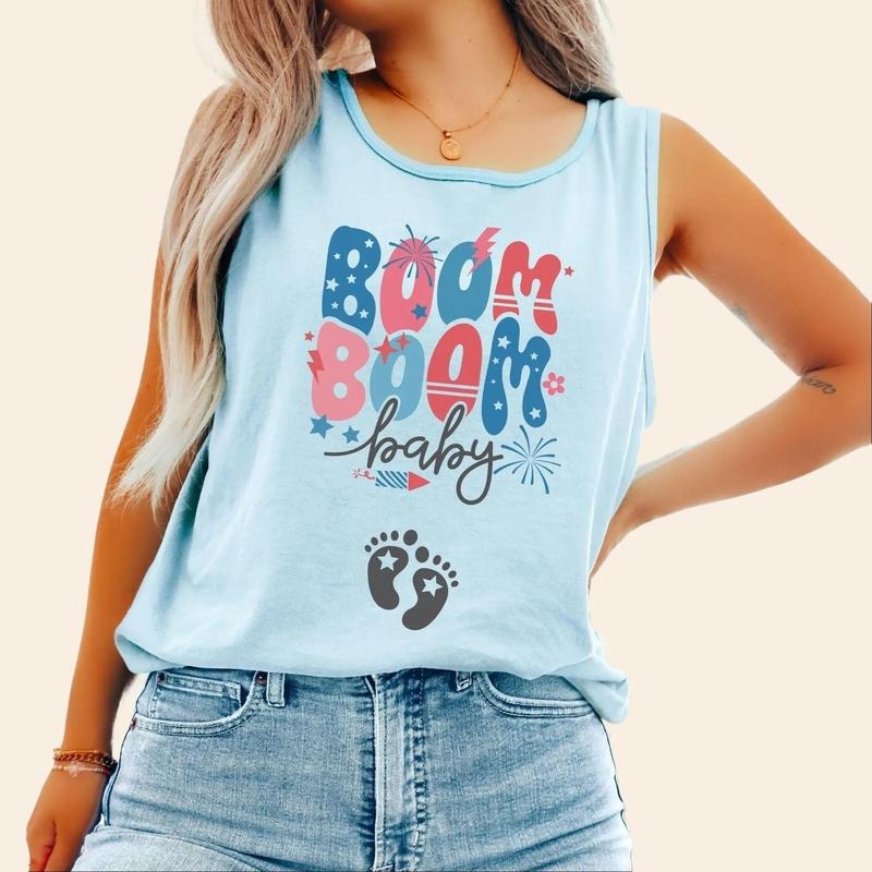 4th of July Pregnancy Announcement Tank Top Fourth of July Baby Reveal top July 2025 Maternity Tank Memorial Day Red White and Due Tee