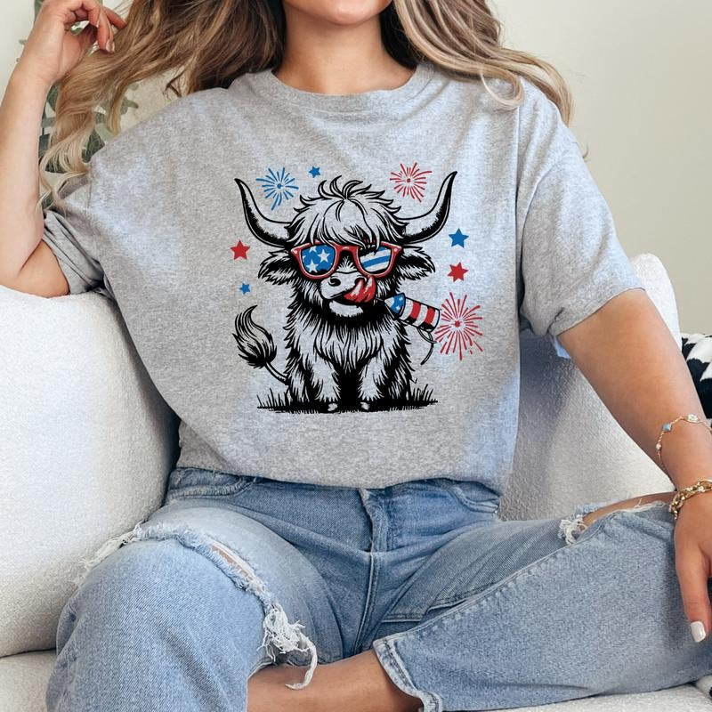 4th Of July Shirts, Retro Fourth of July Western Cow Shirt, Independence Day Shirt, Patriotic Shirt, American Shirt