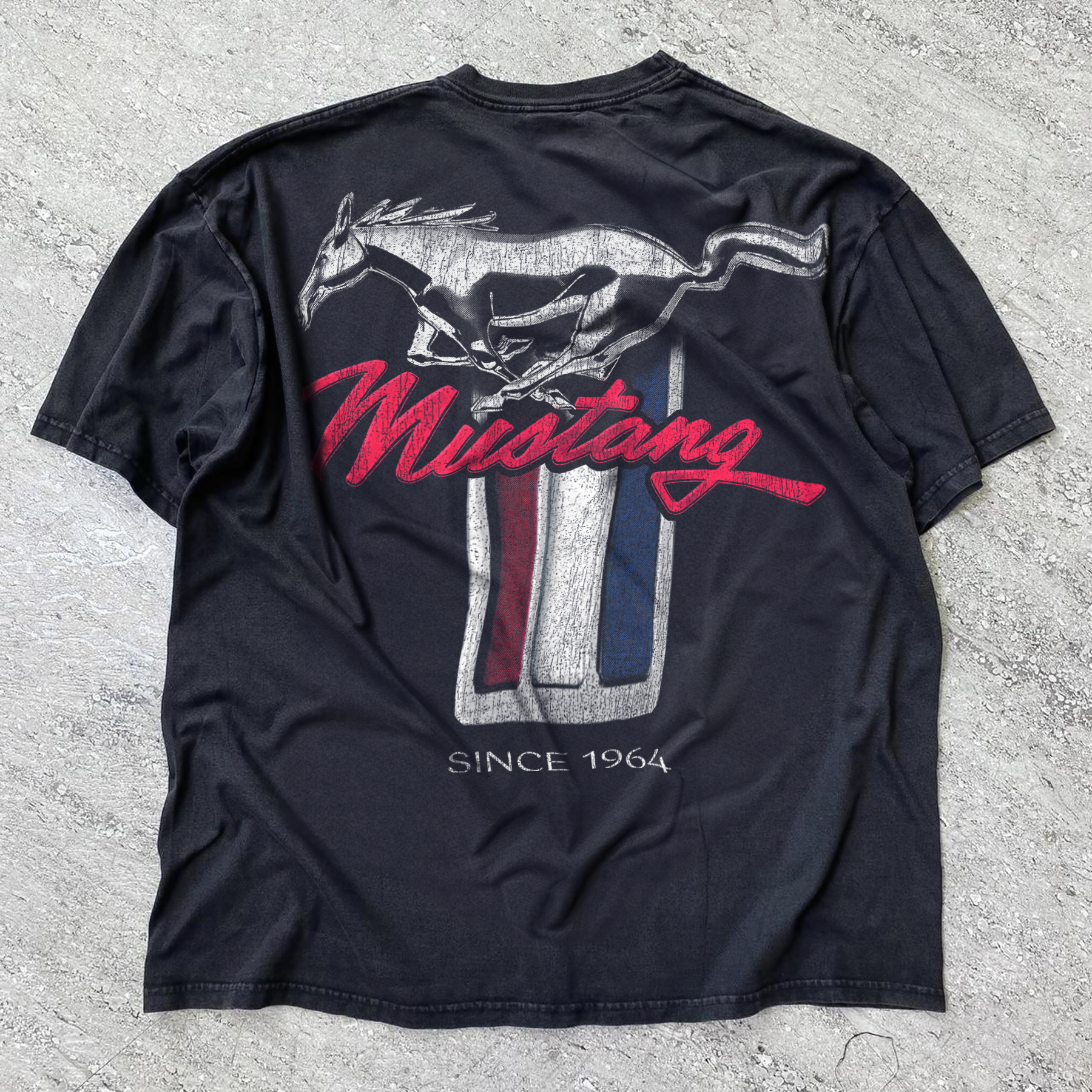 64' MUSTANG WASHED BLACK HEAVYWEIGHT TEE