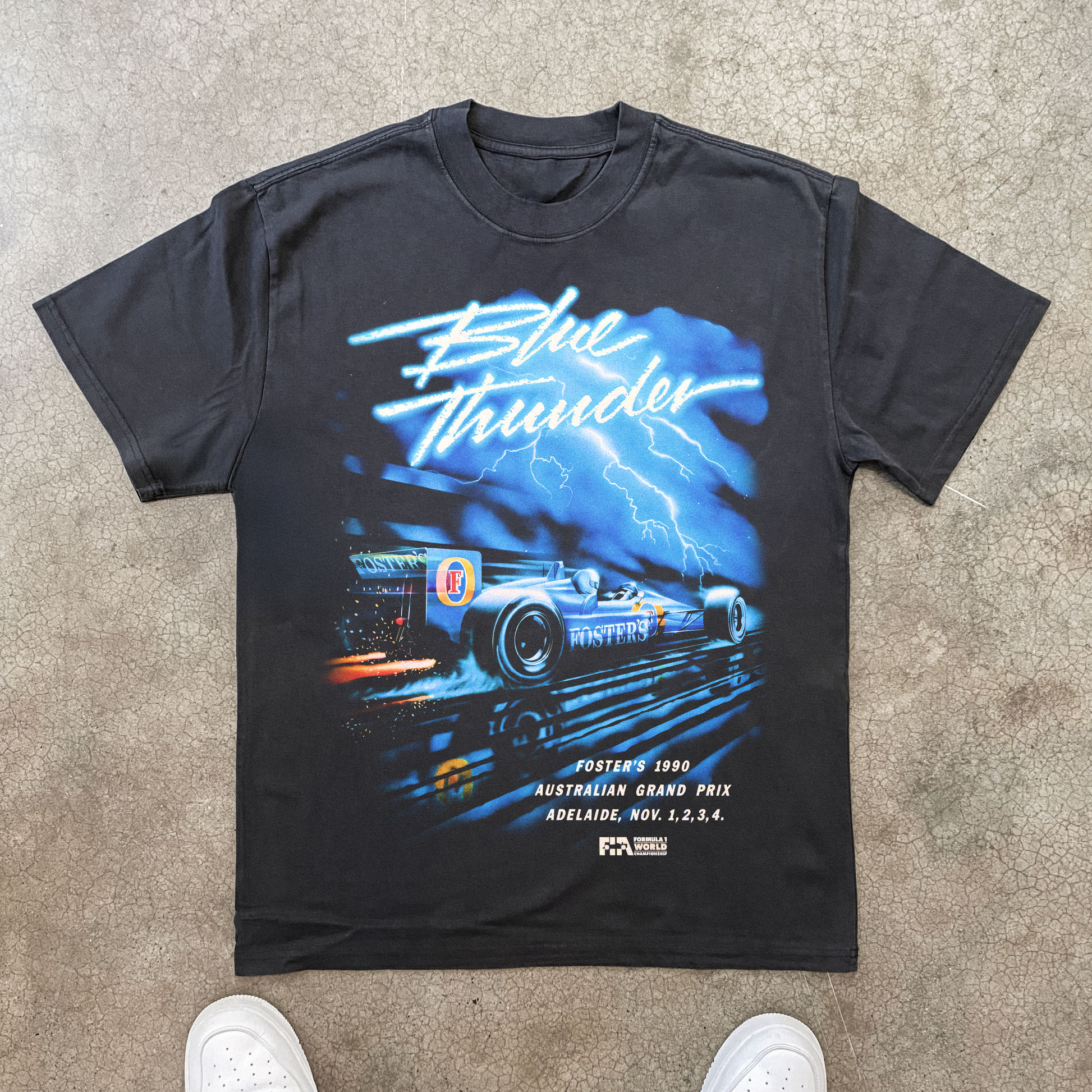 90s FOSTERS 'BLUE THUNDER' LIGHTNING GRAND PRIX HEAVY BLACK TEE