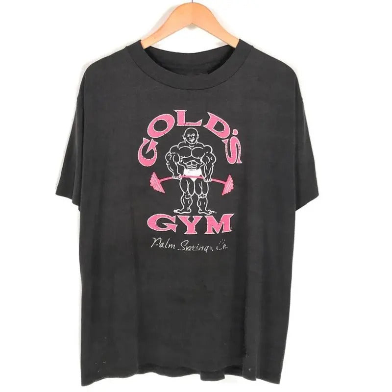 90s Gold s Gym Palm Springs California T-Shirt. Vintage Gold s Gym Bar Bell Muscle Man Body Builder Graphic Shirt Menswear Retro