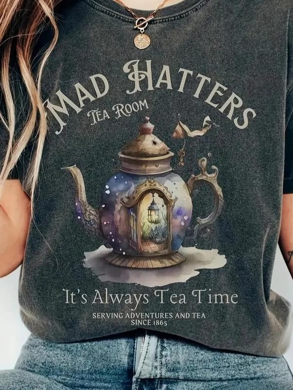 A Family In A Kettle, Letter- Graphic Print-Round Neck Casual Sport Short Sleeve T-Shirt-Fashion Women, Family trip Shirt