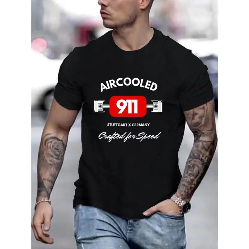 Air-cooled 911 graphic men's short-sleeved T-shirt, comfortable stretch summer fashion T-shirt, casual everyday fashion clothing Made in USA