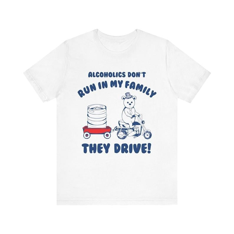 Alcoholics Don't Run In My Family They Drive, Retro Shirt, Inappropriate Shirt, Dank Meme Shirt, Weird Shirt, Funny Drinking Shirt
