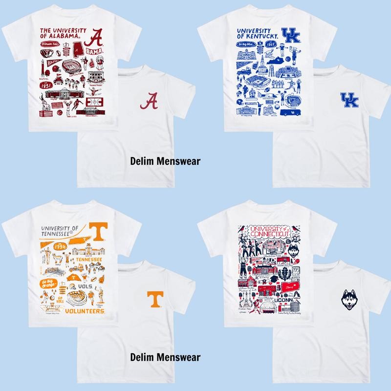 All Team NCAA Crewneck T-Shirt, Hand Drawn University Impressions Artwork, Graphic Shirt, Sport Gift for Men, for Women Menswear Top