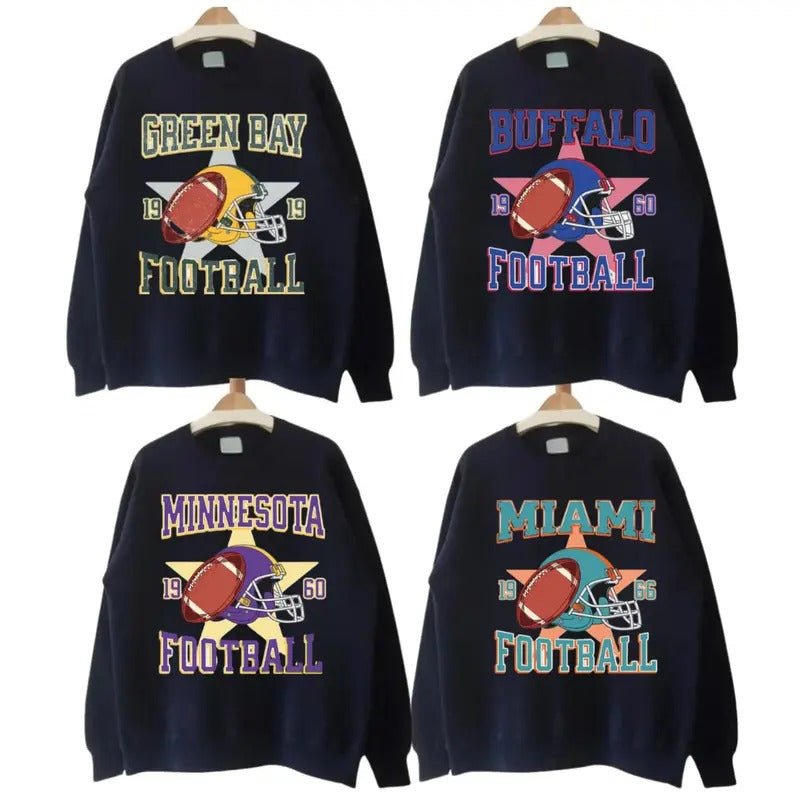 All Teams Football Sweatshirt and Hoodie, Cincinnati Football, New England Football, Baltimore Football, New York Football Sweatshirt, Unisex Womens Mens Shirt Gift For Fan Classic Cotton