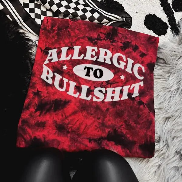 'Allergic to Bullshit' Red & Black Tie Dye Crewneck Sweatshirt, T Shirt, or Hoodie Pullover , Alt, Grunge, Goth, Streetwear, Sarcastic Casual Cotton