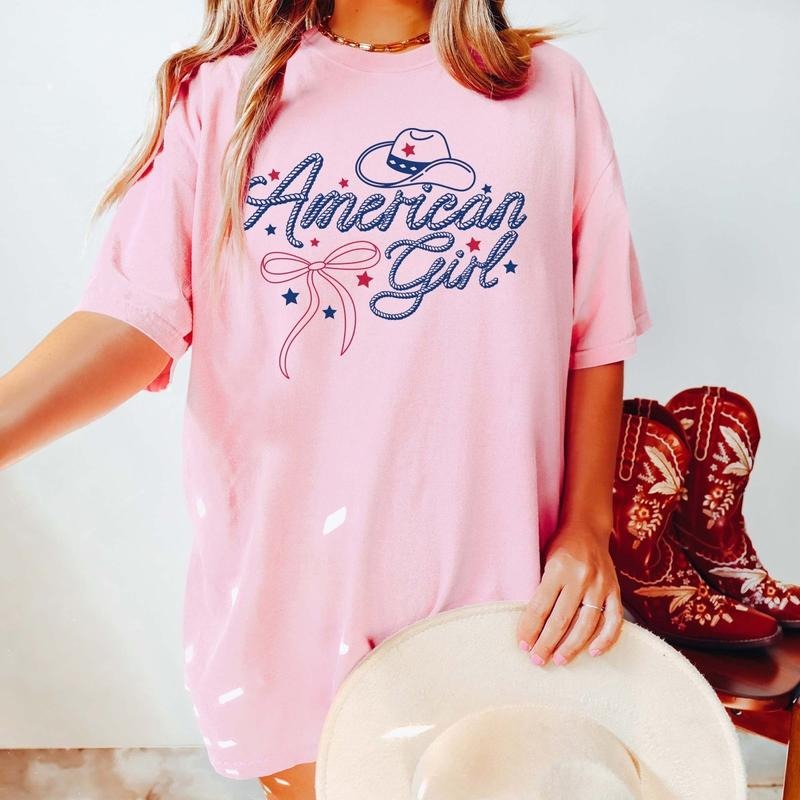 American Girl Hat And Bow Tee America Graphic Tee, Unisex July Shirt