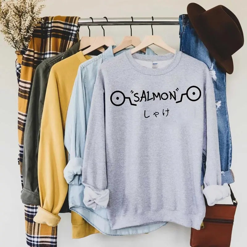 Anime Sweatshirt, Inumaki Toge Salmon Sweatshirt, Cursed Markings, JJK gift, Inumaki Toge Sweatshirt, Anime Lover Gift Sweatshirt, Manga Lover Shirt, Gift for Him & Her, Gift for Jujutsu Kaisen Fan Crewneck Menswear, Sweatshirt, Hoodie