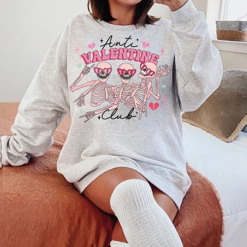 Anti Valentine Club Sweatshirt | Funny Valentine's Sweatshirt | Valentine's Day | Trendy Hoodie and Sweater; T-shirt Cotton Polyester Womenswear Light
