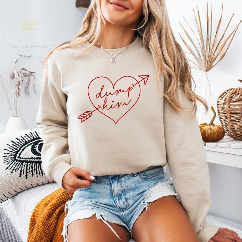Arrow Heart Dump Him Valentines Printed Sweatshirt, Arrow Heart Sweatshirt, Valentines Comfort Colors T Shirt, Good Vibes Gift Sweatshirt Full Color Print
