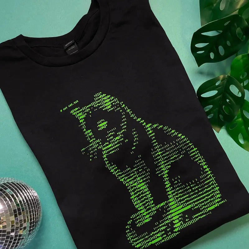 Ascii Cat by Terminal Research on black unisex t-shirt