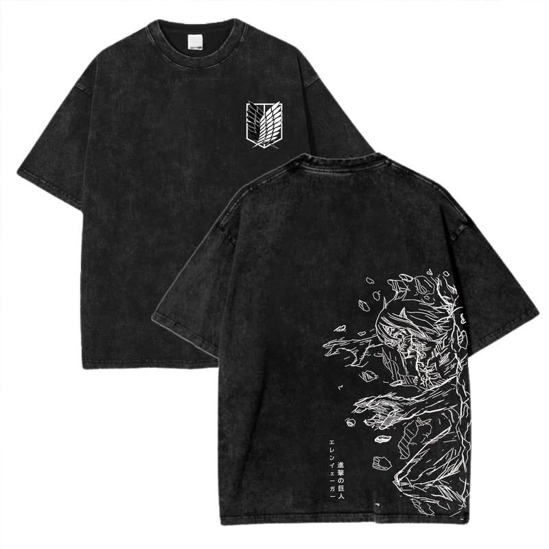 Attack on Titan Anime Oversize Acid Washed T-Shirt, Eren Jeager Anime Tee, AOT Streetwear Style Gift For Him