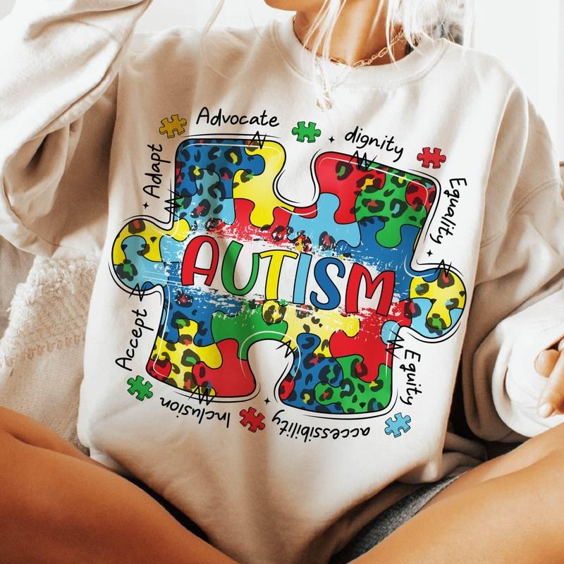 Autism Awareness Sweatshirt, Advocate Dignity Equality Puzzle Piece Graphic Fabric, Colorful Autism Shirt Unisex