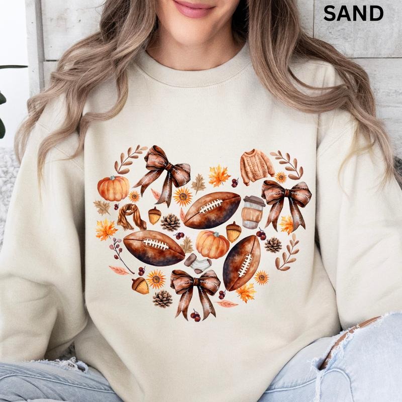 Autumn Fall Doodles Sweatshirt, Football Bow Heart Doodles Crewneck, Fall Sweatshirt, Graphic Fall Crewneck, Sweatshirt Unisex Fit Causal Sweatshirt for Halloween Womenswear Hoodie