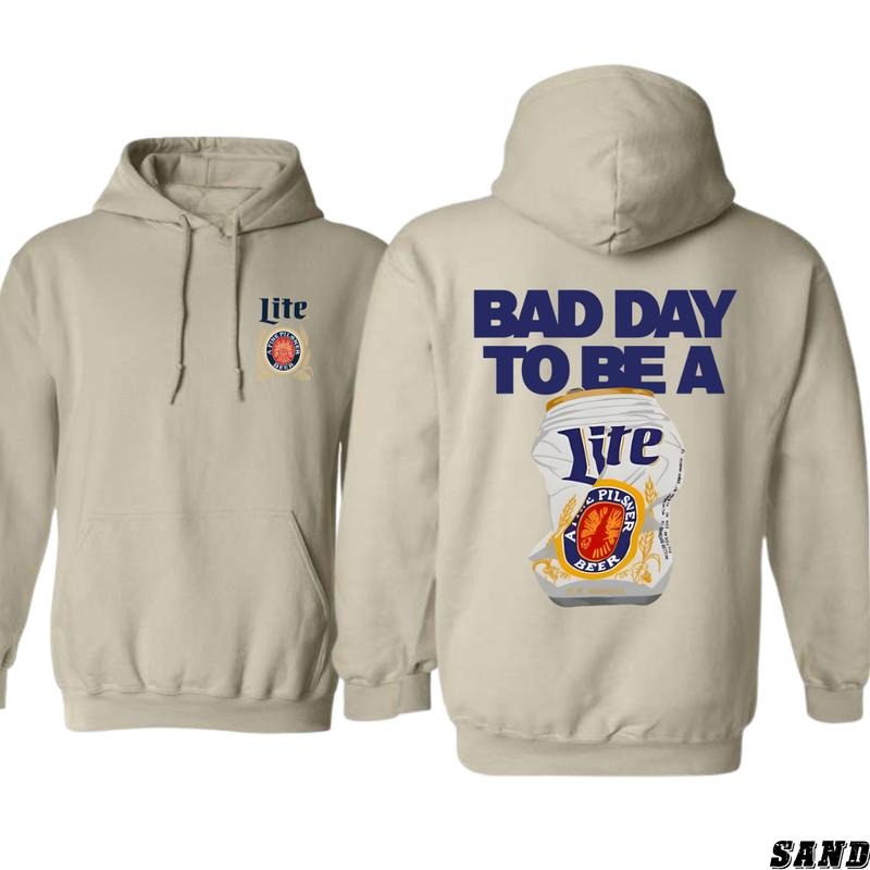 Bad Day to Be a Lite Hoodie - Fun Beer-Inspired Design Featuring Bold 'Bad Day to Be a Lite' Text with a Crushed Lite Beer Can Graphic, Perfect for Beer Lovers and Casual Style Enthusiasts, Unisex Hoodie for Comfort and Everyday Wear, Menswear Tops.