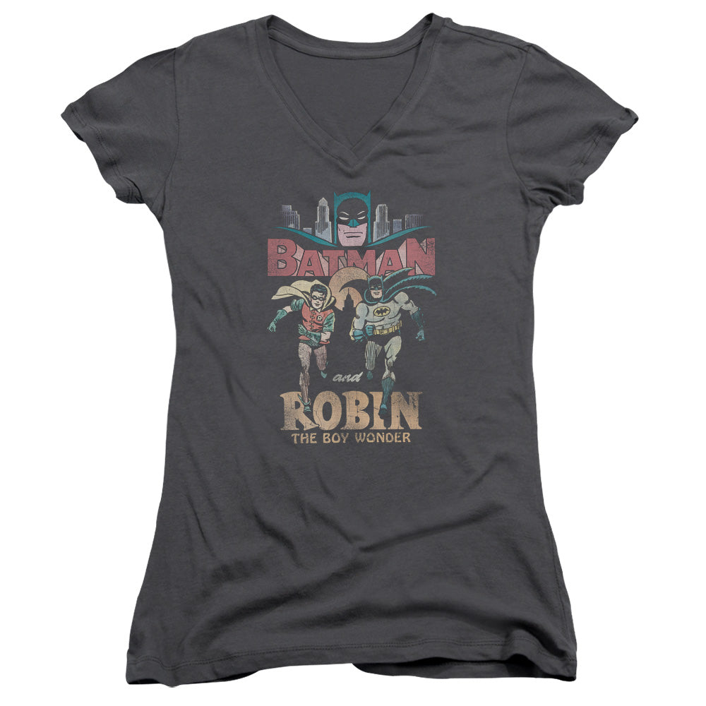 Batman Classic Tv Classic Duo Junior Sheer Cap Sleeve V Neck Womens T Shirt Charcoal