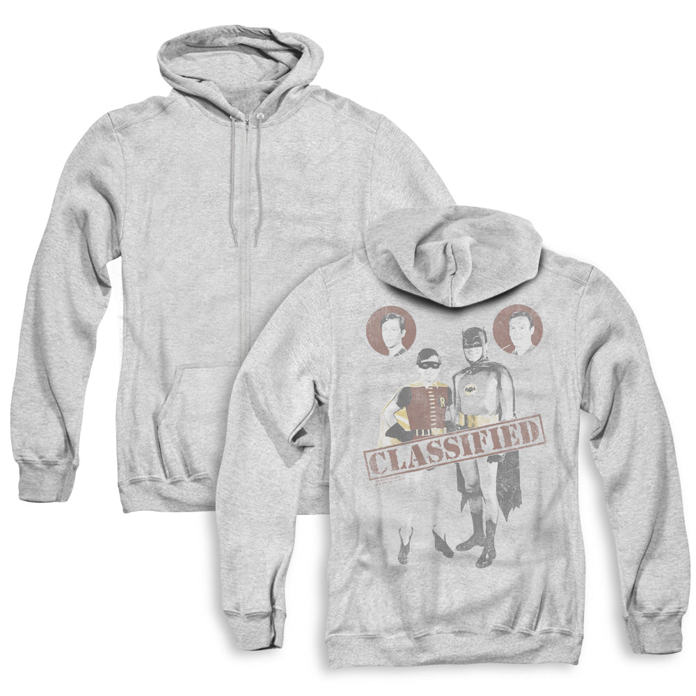 Batman Classic Tv Classified Back Print Zipper Mens Hoodie Athletic Heather
