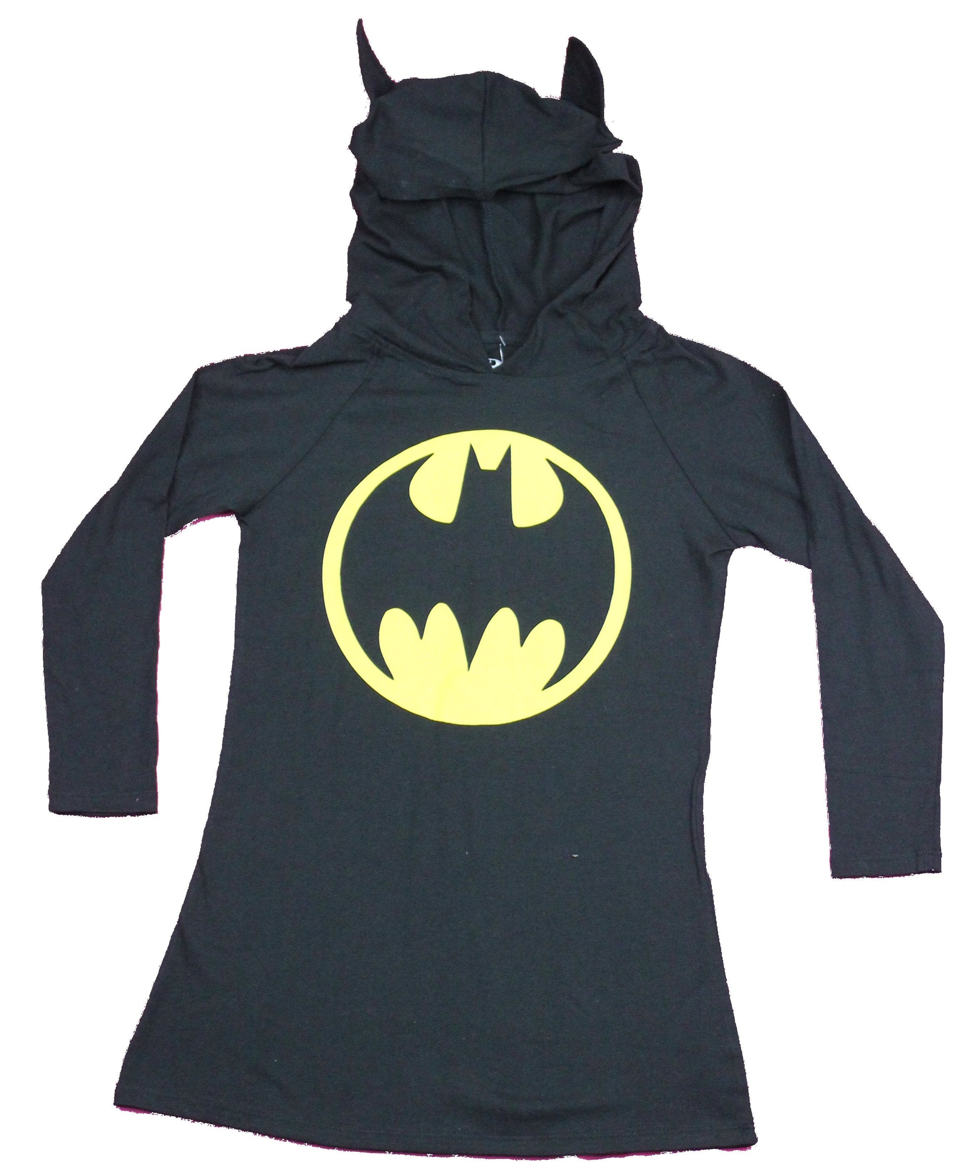 Batman Girls Juniors Hooded Long Sleeve T-Shirt - With Ears
