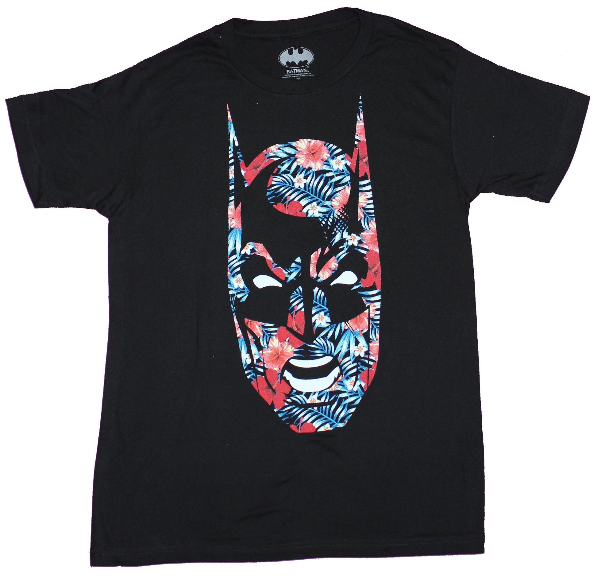 Batman Mens T-Shirt - Classic Batman Mask in Floral Design