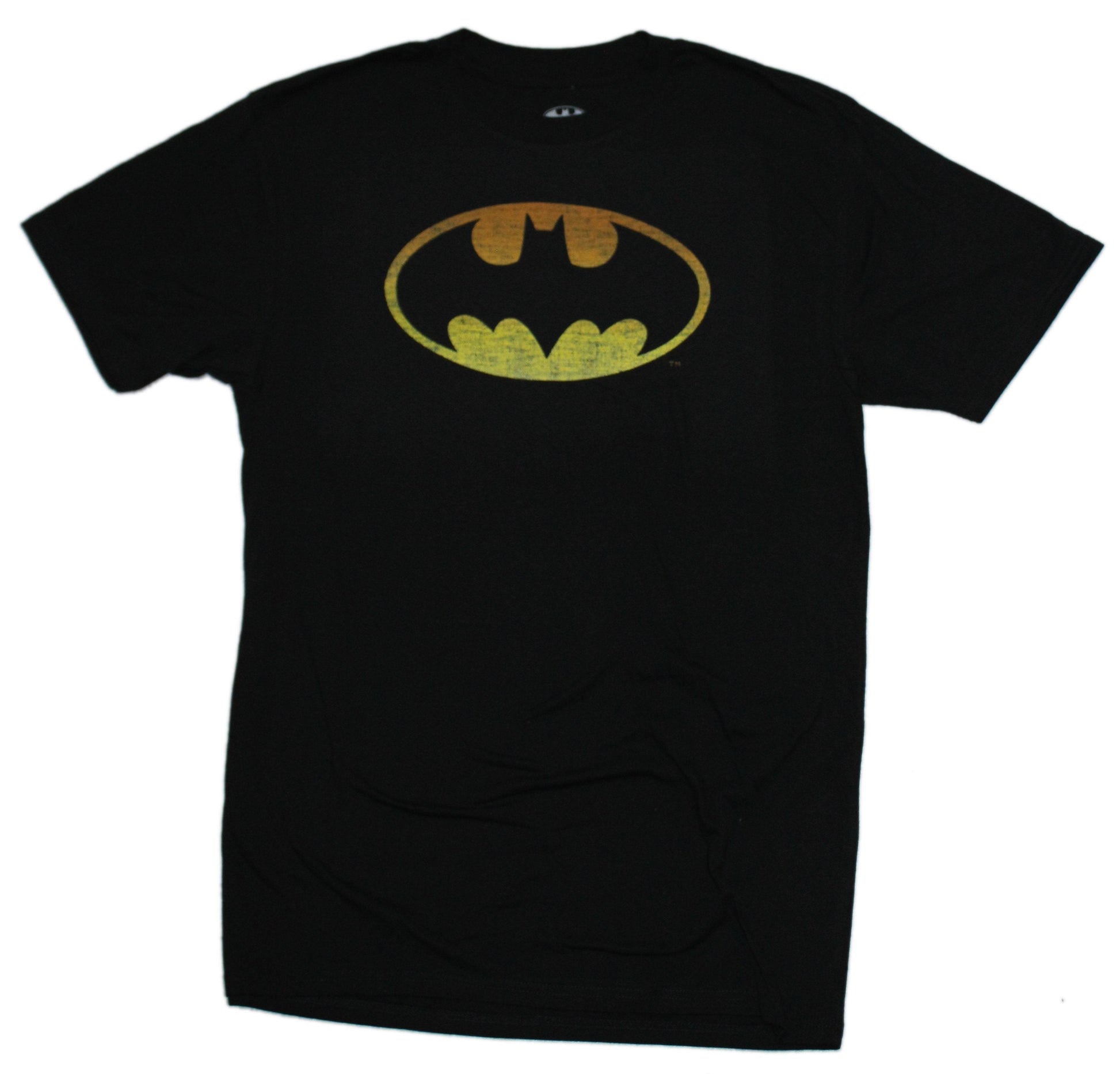 Batman Mens T-Shirt - Classic Yellow and Orange Distressed Logo