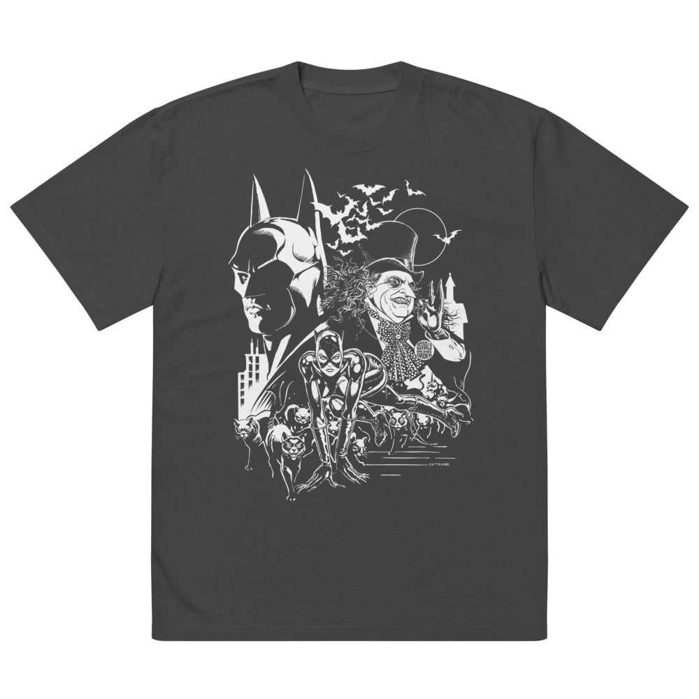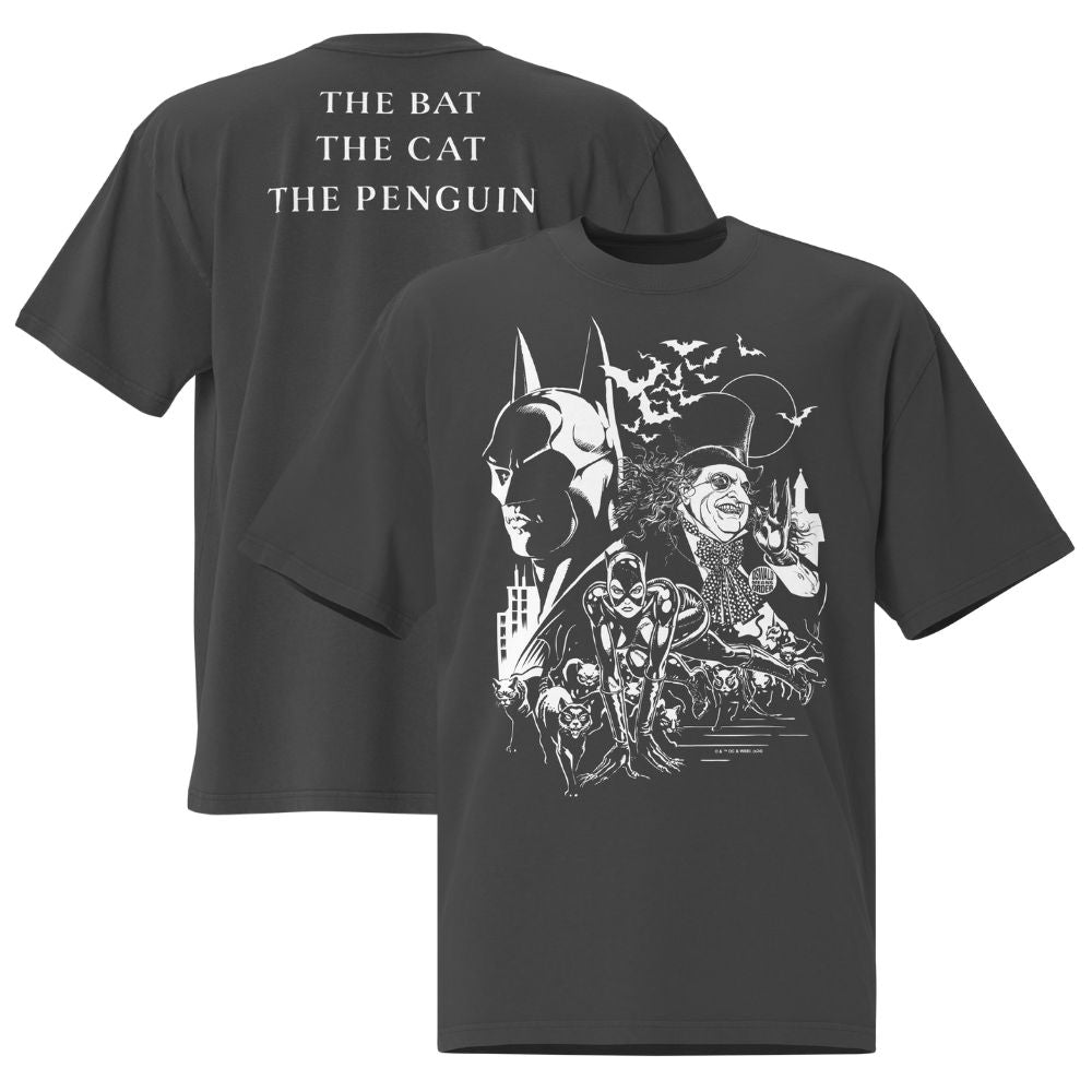 BATMAN RETURNS The Bat The Cat The Penguin Oversized Faded T-shirt