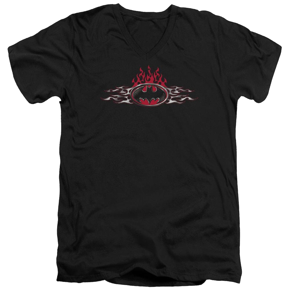 Batman Steel Flames Logo - Men's V-Neck T-Shirt