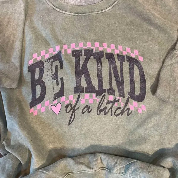 'Be Kind of a Bitch' Kale (Green) Mineral Wash Crewneck Sweatshirt, T Shirt, or Hoodie Aesthetic Pullover | Punk Rocker Style