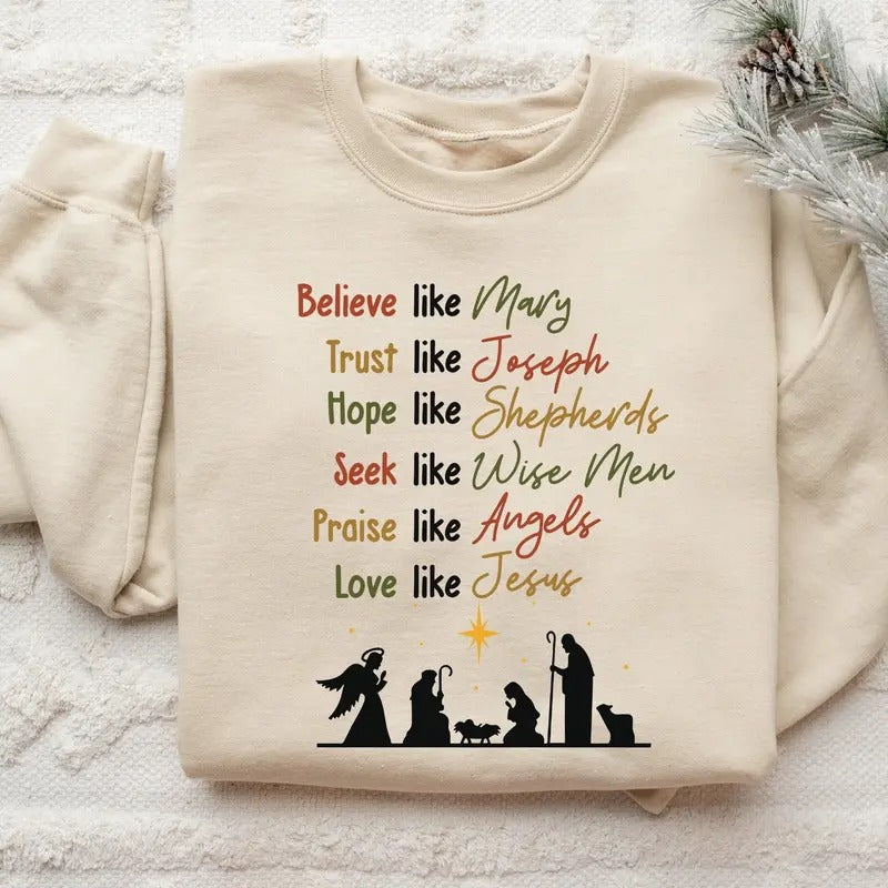 Believe Christmas Sweatshirt - Christian Christmas Unisex Crewneck Sweatshirt - Fabric Classic Cotton
