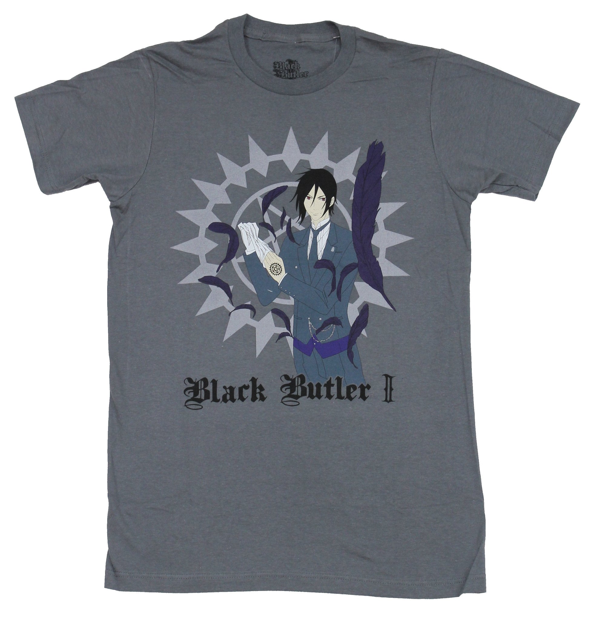 Black Butler Mens T-Shirt - Sebastian Removing Glove Amongst Feathers
