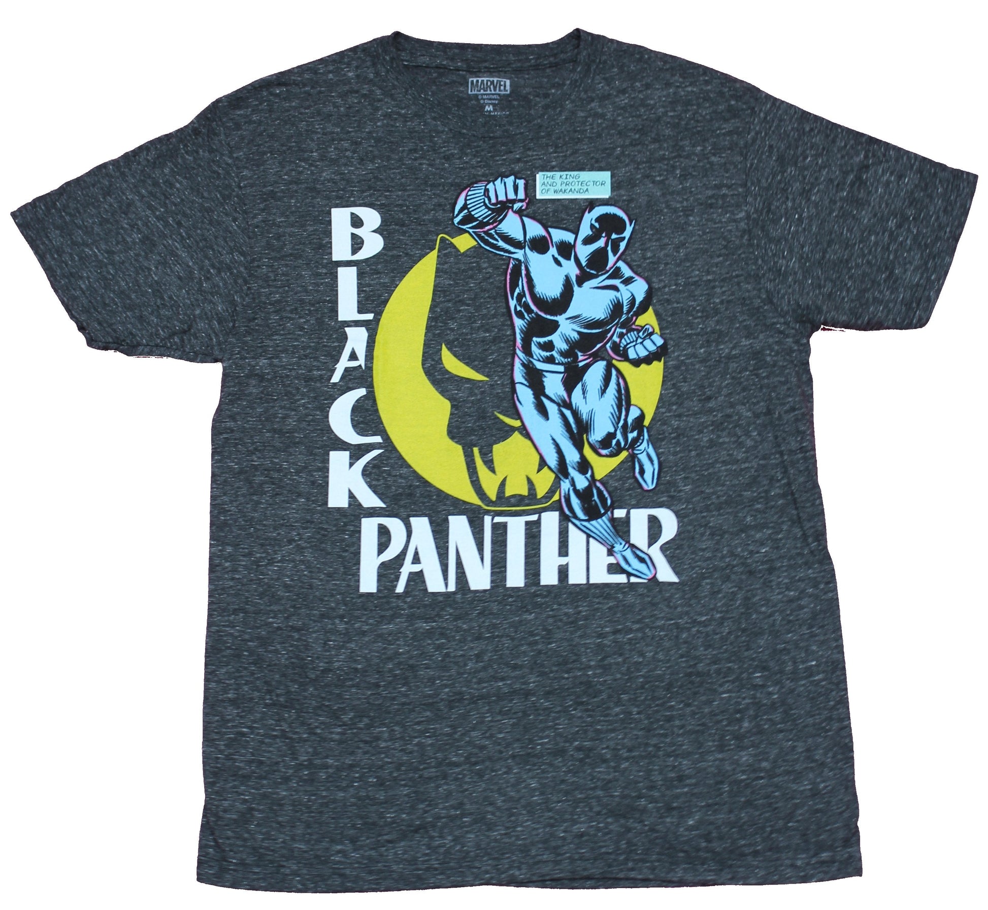 Black Panther Mens T-Shirt - Classic Comic Style Attacking Over Yellow Symbol