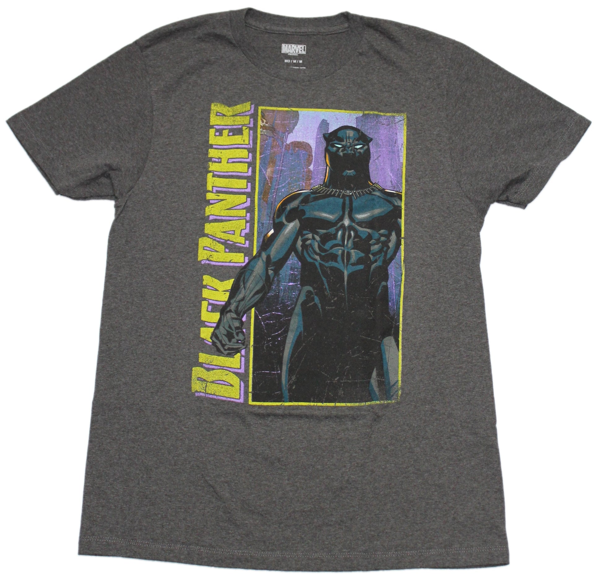 Black Panther Mens T-Shirt - Comic Style In Yellow Box & logo