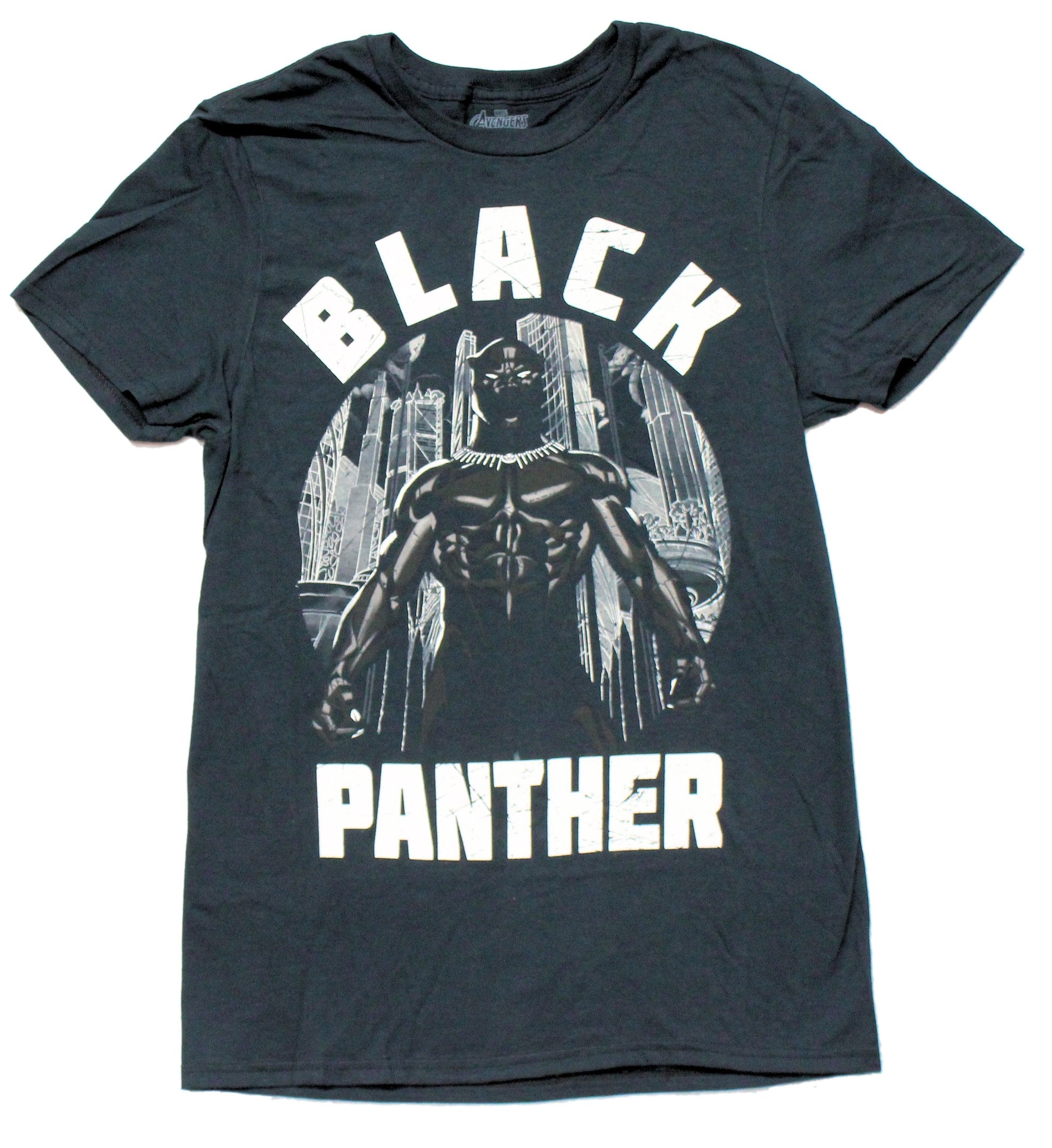 Black Panther Mens T-Shirt - Standing Proud Between Distressed Name