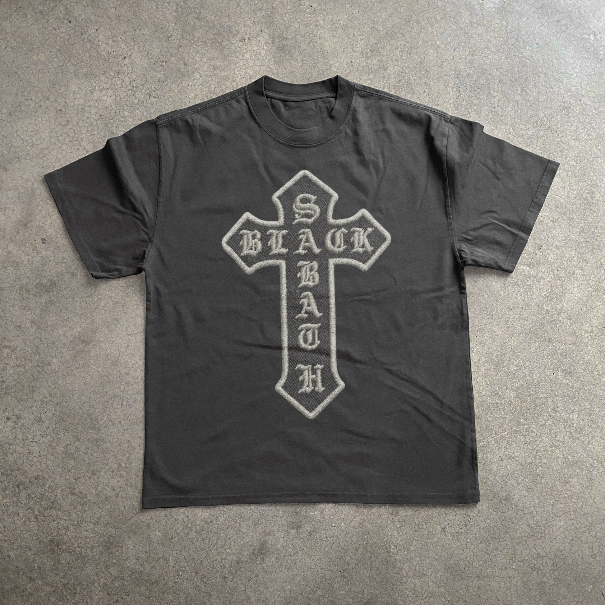 BLACK SABATH CROSS LOGO HEAVYWEIGHT BLACK T-SHIRT