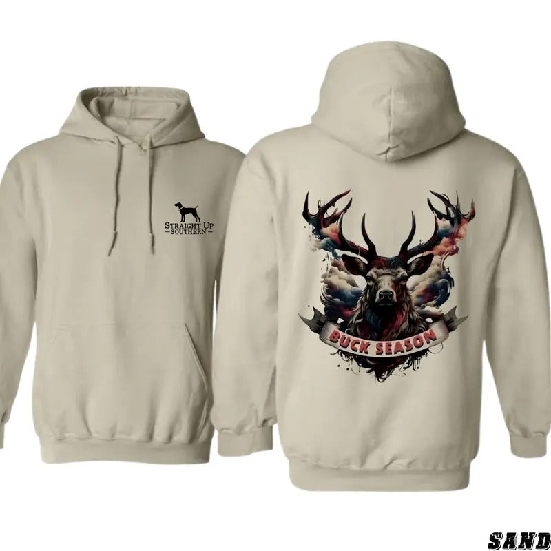Bold Buck Season Graphic Hoodie for Hunting Enthusiasts - Unisex Style - Tops, Sweatshirts