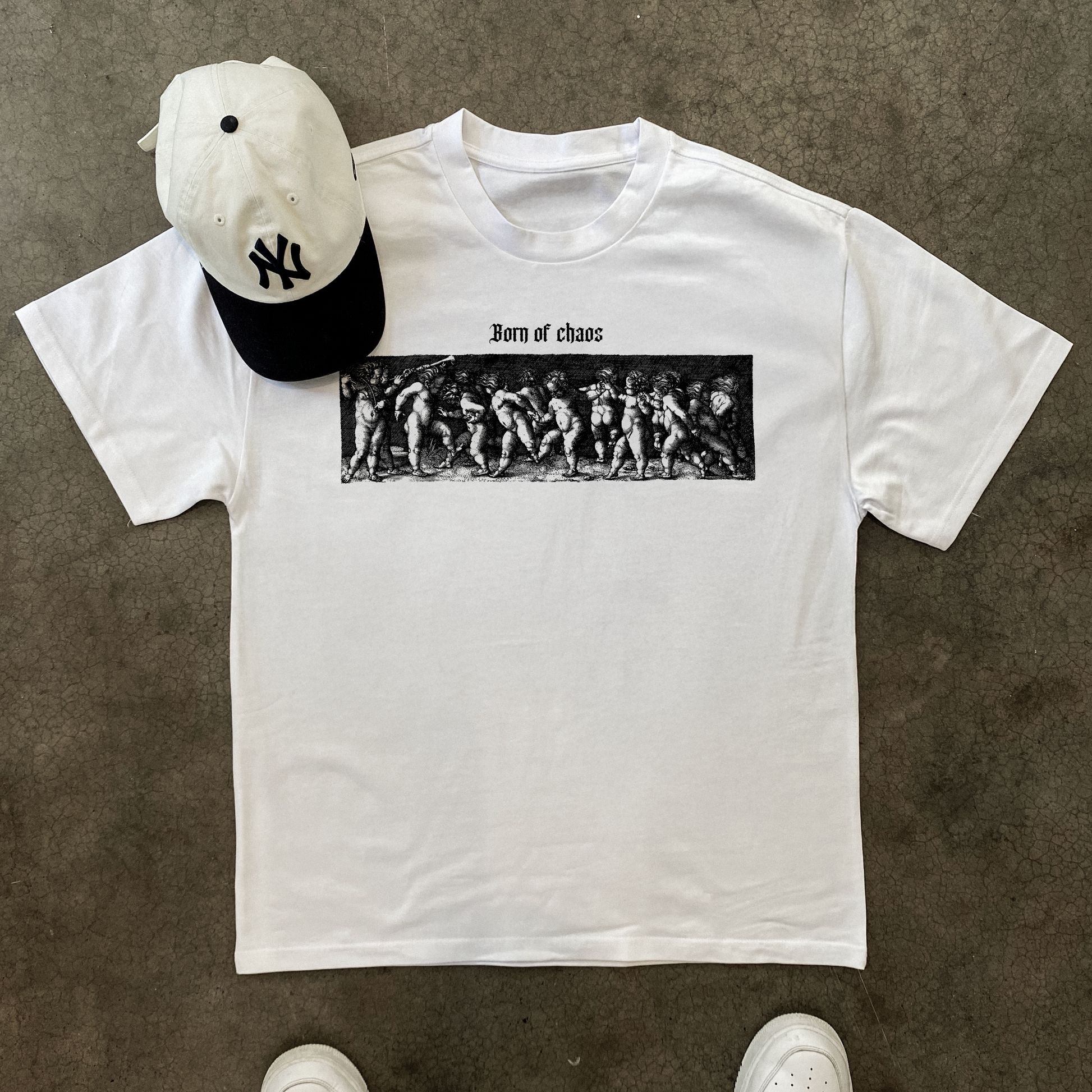 'BORN OF CHAOS' HEAVYWEIGHT WHITE T-SHIRT